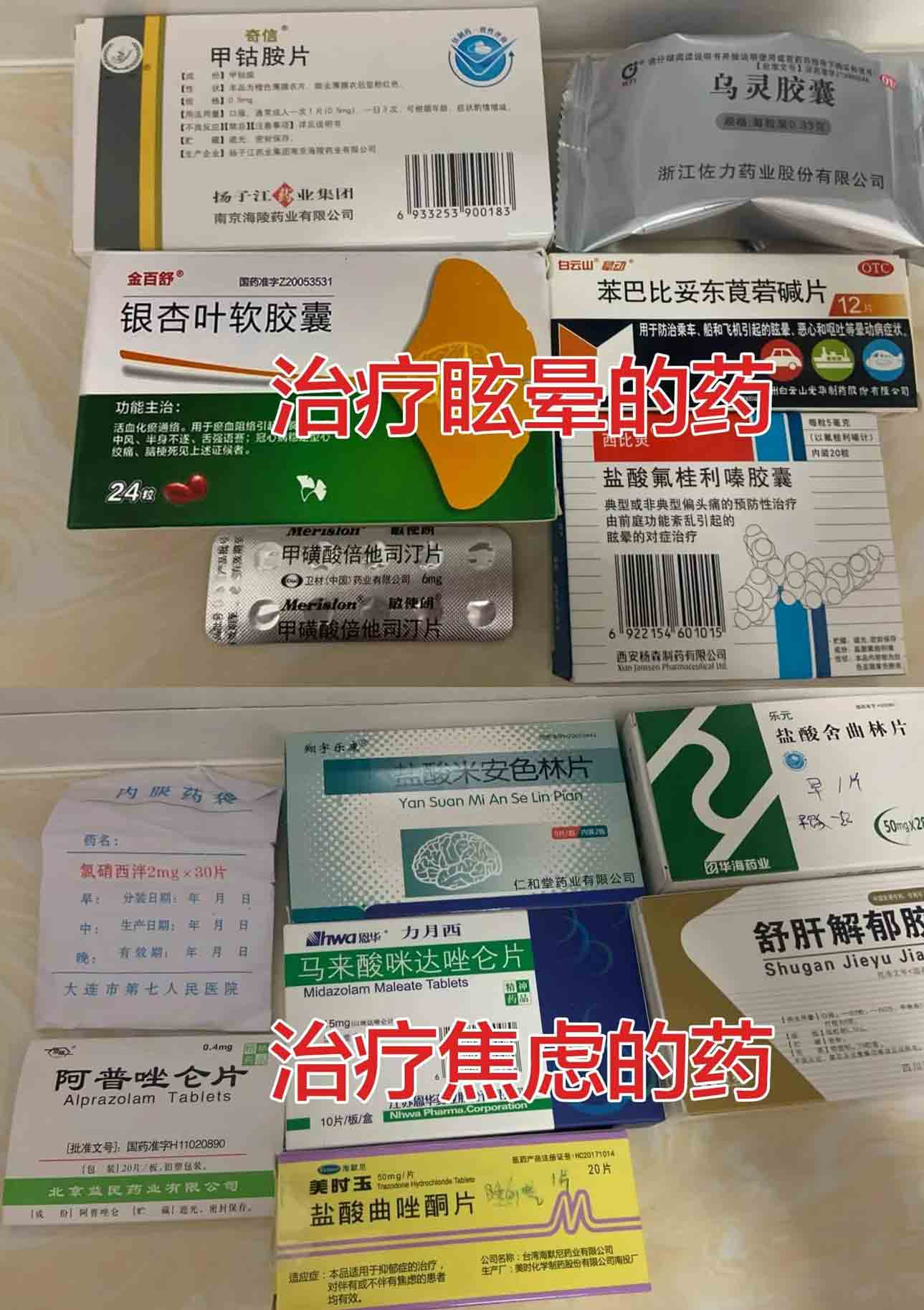 (这是当时吃的药,眩晕+焦虑真是太痛苦了)
